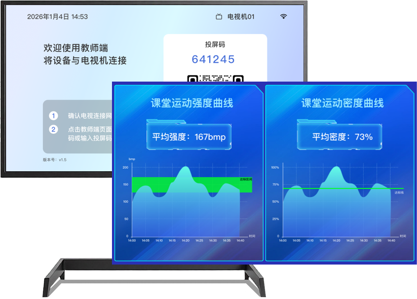 户外体育课可以使用我们专门定制的LED音视频一体化智能播放机、学校现有的LED大屏幕,或者采用电视+雨棚的简易配置室内体育课可以直接使用电视或学校现有的LED、触摸屏。